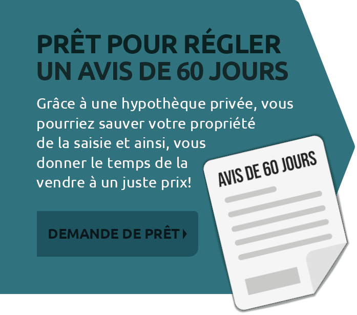 Le financement hypothécaire offert par la plupart des banques et des institutions financières traditionnelles, est parfois difficile à avoir, en particulier lorsque vous avez un mauvais score de crédit ou que vous êtes dans une situation problématique. L'hypothèque privée, quant à elle, peut être facile et rapide à obtenir, car l'approbation se base presque exclusivement sur l'équité disponible sur votre propriété; la préapprobation est généralement obtenue en moins de 48 à 72 heures.